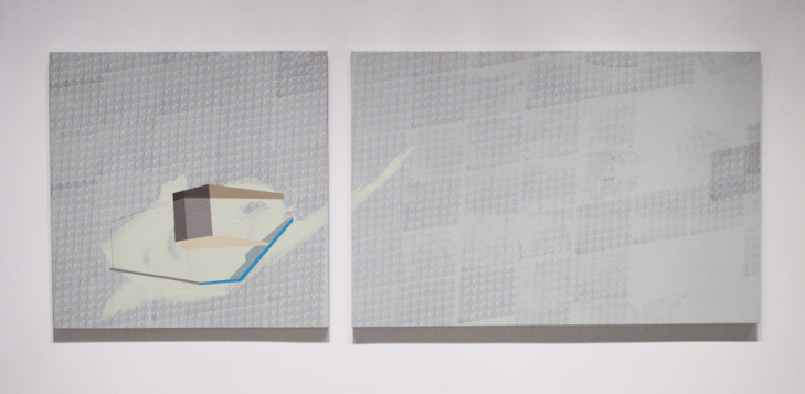 Screen printing, acrylic and graphite on canvas, 122cm x 122cm, 183cm x 122cm, 2011.
