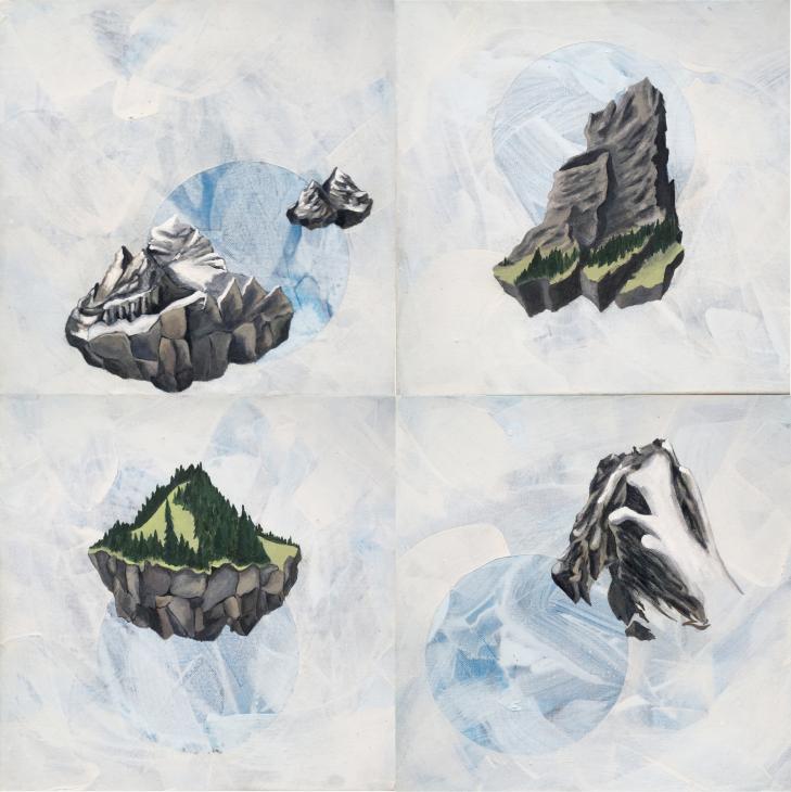 Oil and acrylic on canvas, 4 30cm x 30cm panels, 2015.